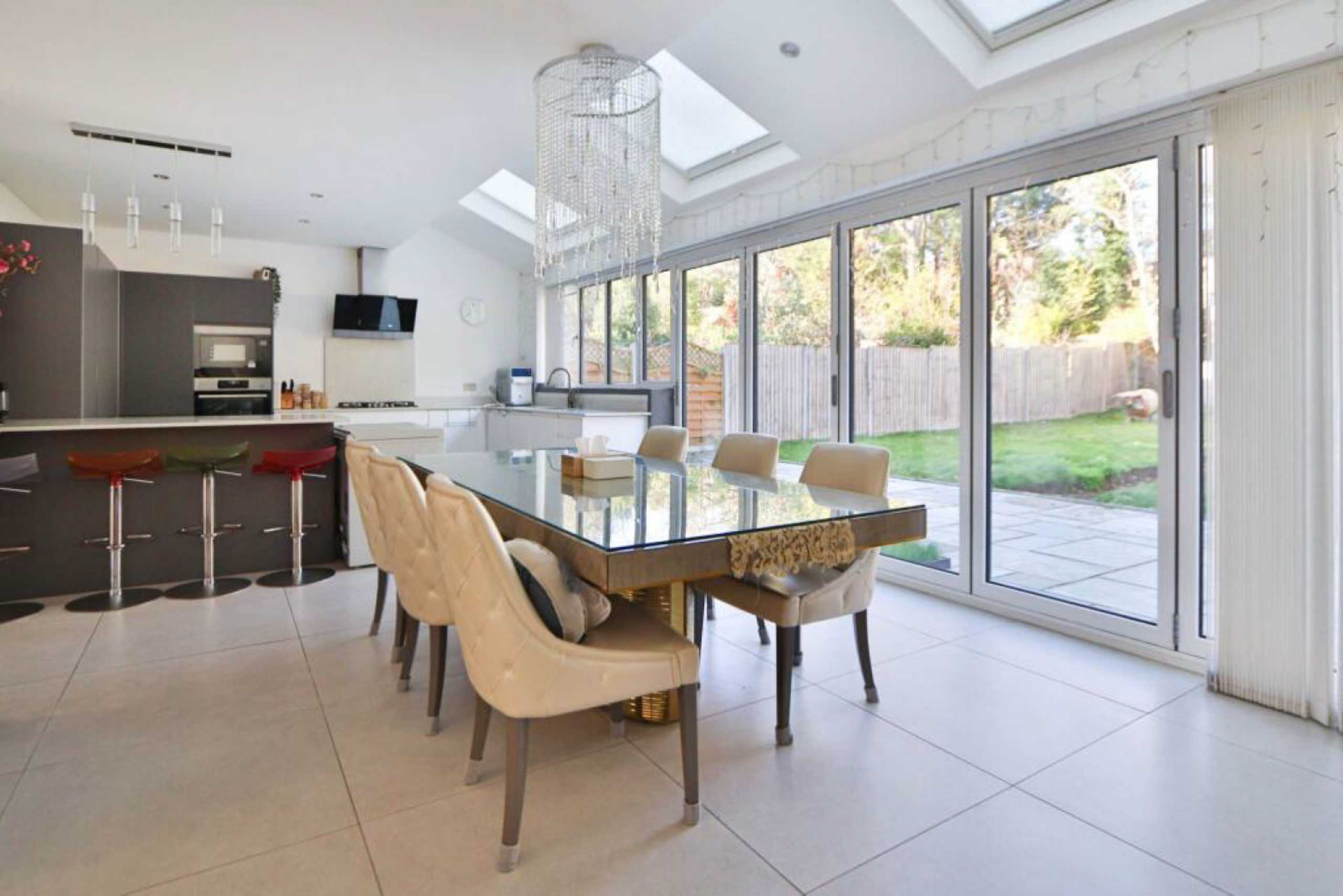 A spacious & luxurious detached house, offering over 2,830 sq ft living space with a large garden. This property benefits from high specification throughout with a large marble tiled double reception and a large open plan kitchen/dining room with tri-folding doors and bright skylights. The property offers five bedrooms, three bathrooms, large garden and off street parking for two cars.