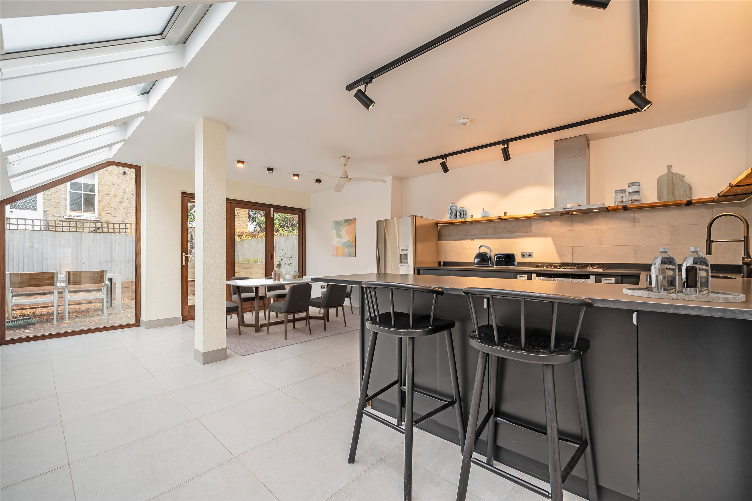 The property benefits from high ceilings, original fireplaces and thoughtfully designed interiors that provide a seamless flow between the living, dining and kitchen spaces.