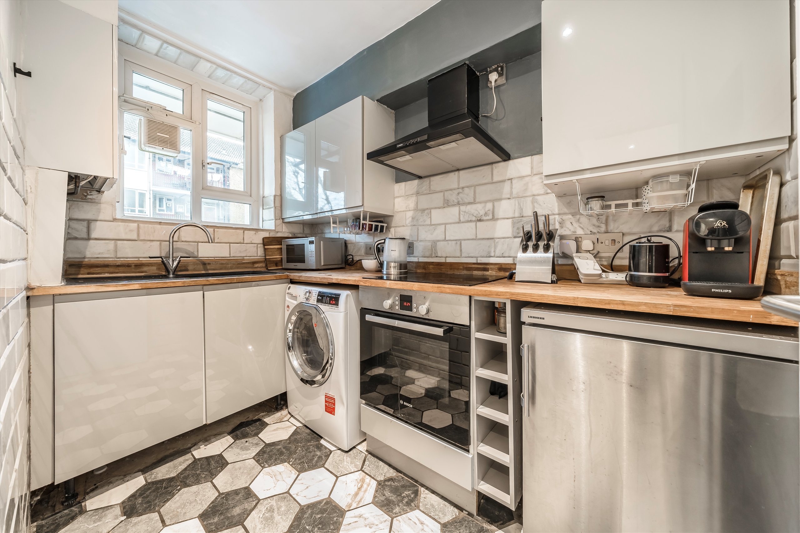 Available to let, this three-bedroom purpose-built apartment is located on the first floor of Robert Owen House and benefits from its own private entrance and a terrace.