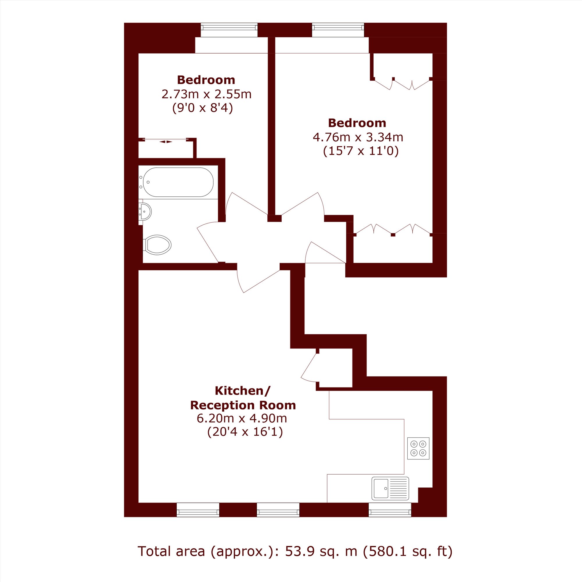 The property offers a bright and spacious reception room with excellent natural light, a modern open-plan kitchen with integrated appliances, two generous double bedrooms and a contemporary bathroom. The apartment further benefits from underfloor heating throughout and is furnished to a high standard, providing comfortable and stylish living..