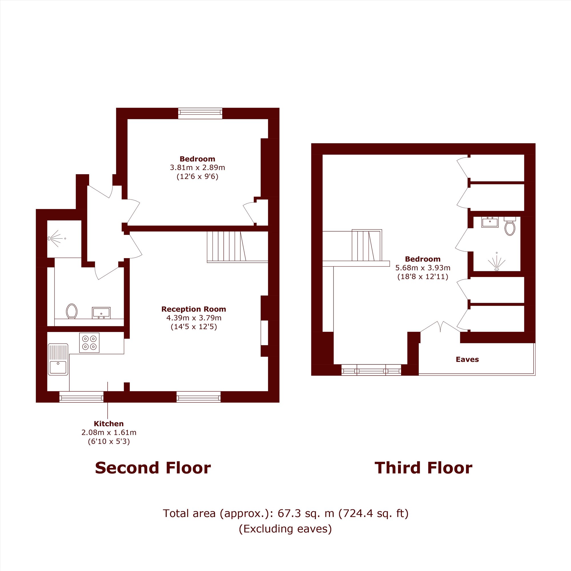 A well presented two bedroom split-level apartment arranged over the top two floors of a Victorian villa. The property offers a reception room, separate kitchen and generous principal bedroom with excellent eaves storage.