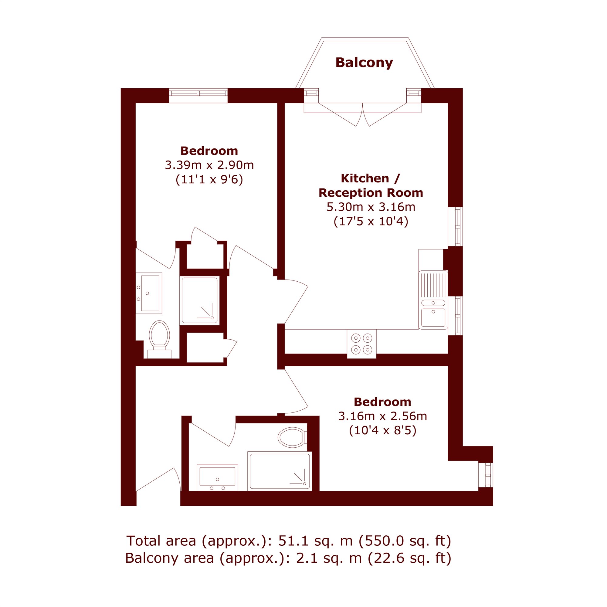 A two bedroom, two bathroom first floor flat with private balcony to let in an attractive gated development. This property offers an open plan kitchen/reception with wooden flooring, full integrated kitchen and communal gardens.