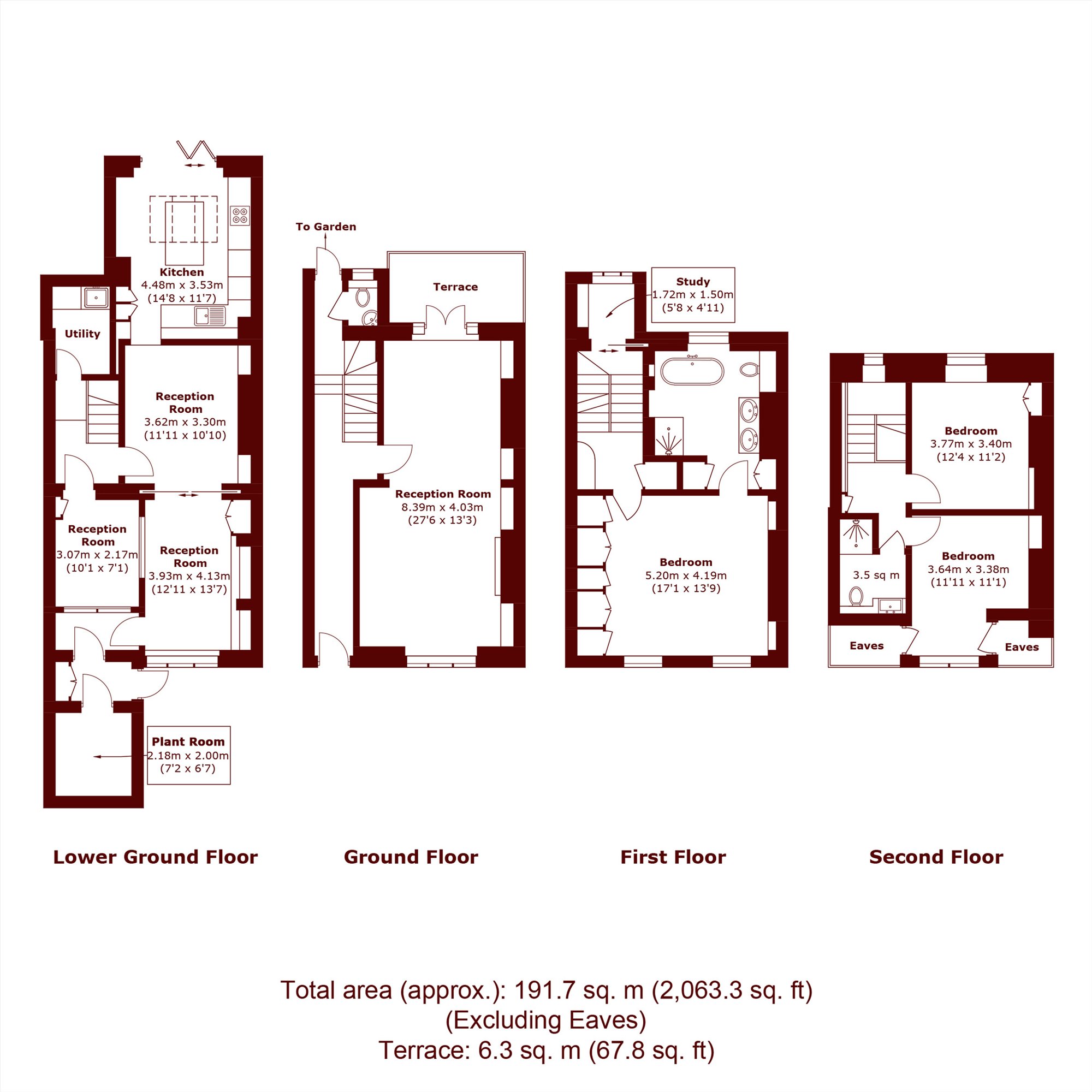 A beautiful three bedroom, two bathroom house over four floors, with a balcony and a garden.