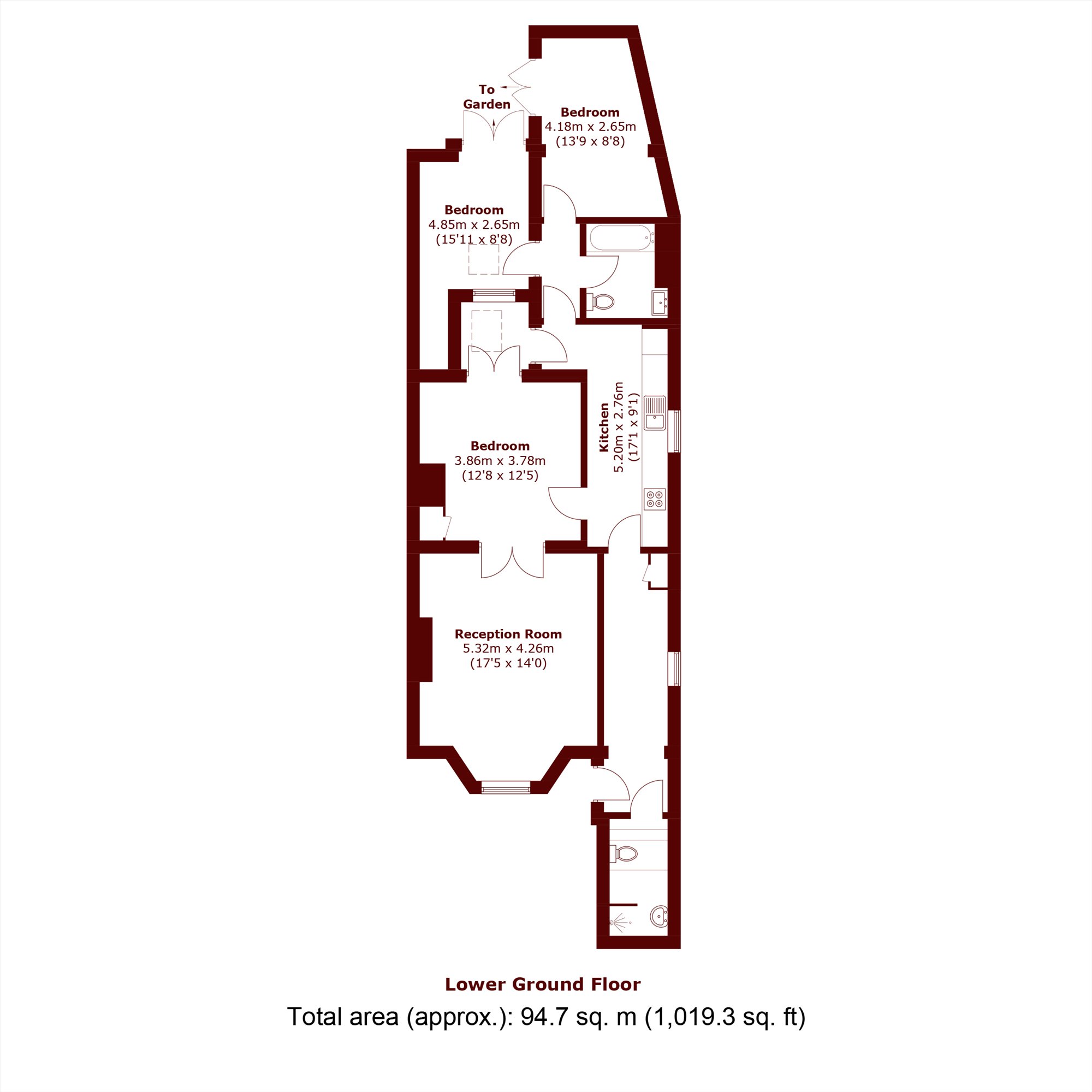 Further benefits include two bathrooms, a private garden, and a well-proportioned layout that maximises natural light throughout. The property is offered unfurnished, allowing tenants to personalise the space to their own taste.