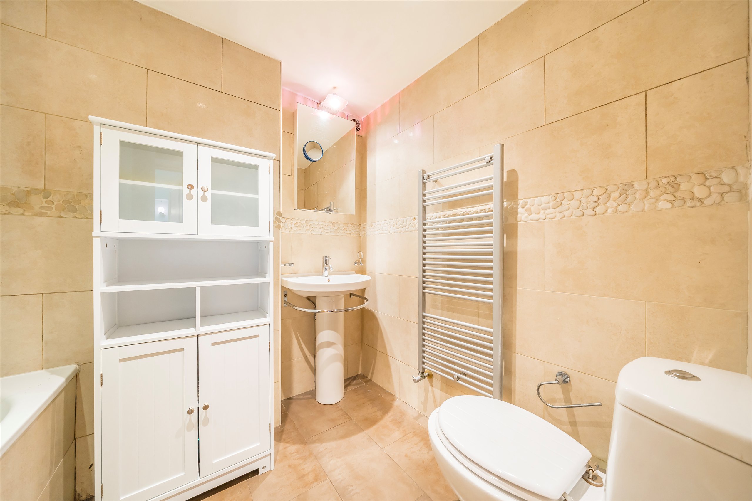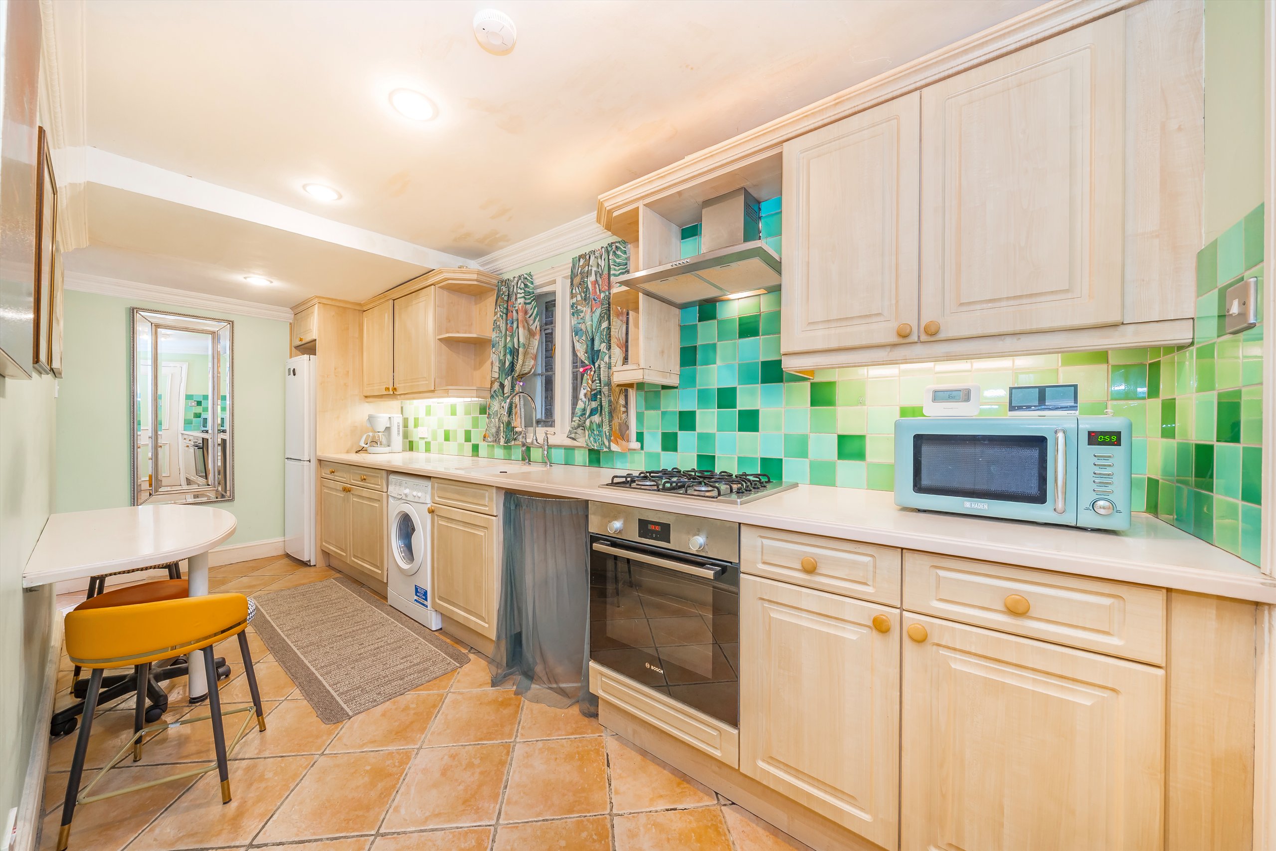 The property comprises three generous double bedrooms, all offering excellent storage space, making it ideal for professional sharers or a family. There is a separate reception room, providing a comfortable living and entertaining space, and a full-sized fitted kitchen complete with white goods and ample cupboard and worktop space.