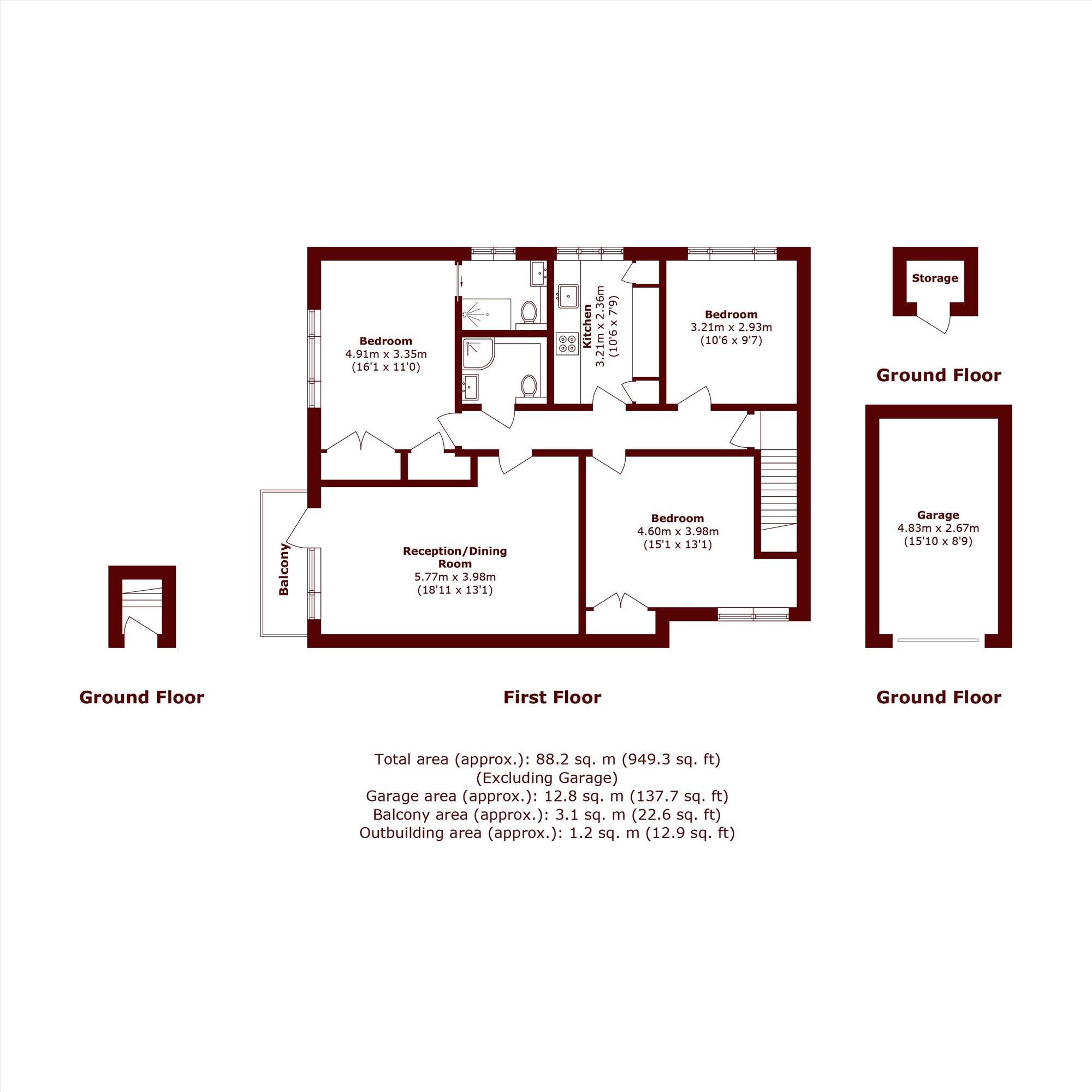 A three bedroom first floor maisonette in a quiet development on The Slopes of Wimbledon. The property has its own entrance, a modern separate kitchen, spacious reception, principal bedroom with en suite bathroom, two further bedrooms and a shower room. The property further benefits from communal gardens and a single garage and a large loft for storage.