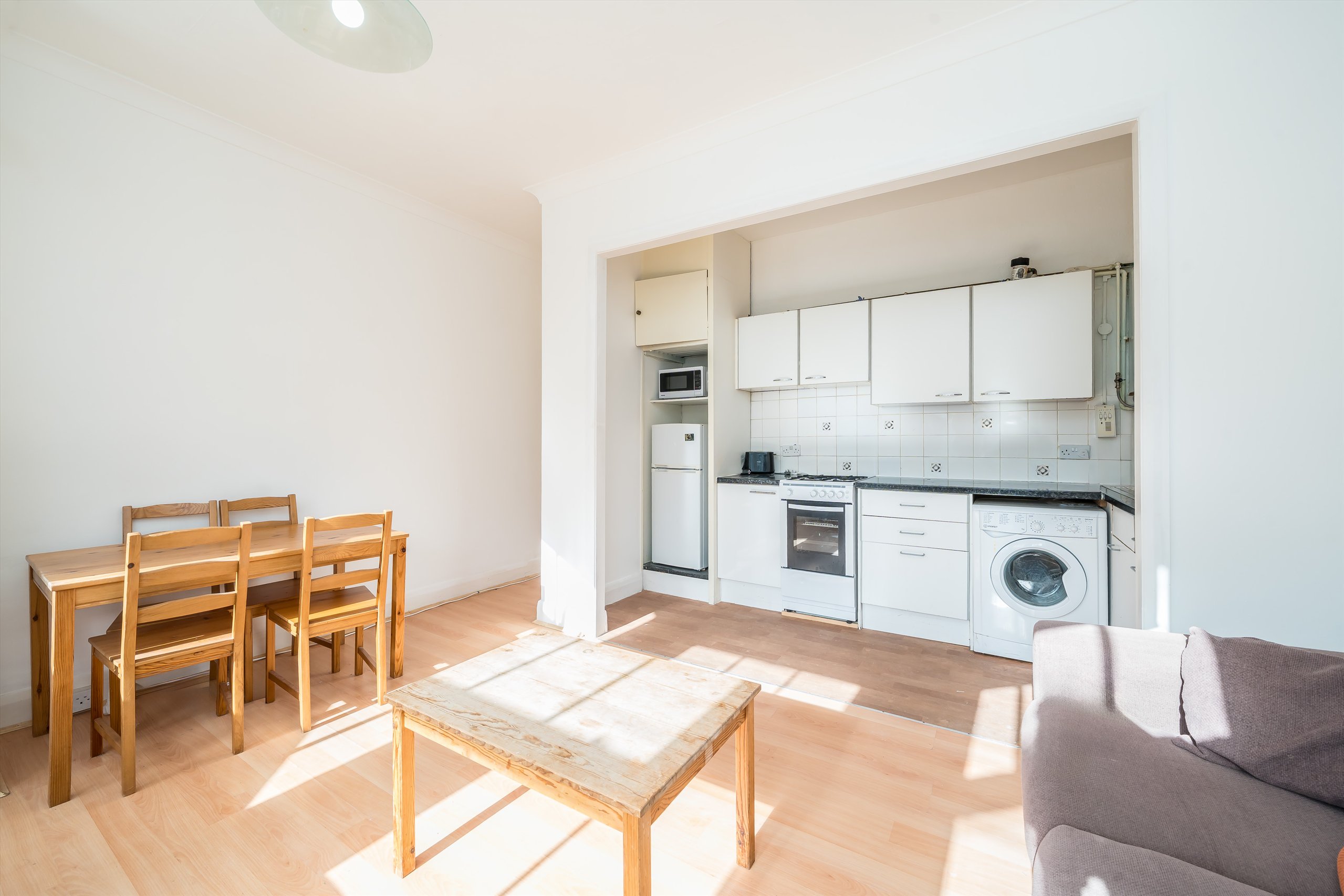 Situated on the first floor, this larger than average two double bedroom property comes to the market in good condition. The flat consists of an open plan kitchen/reception room, two good sized double bedrooms (which would be fine for sharers) and family bathroom. The property further benefits from high ceilings, wooden floors and is flooded with light.