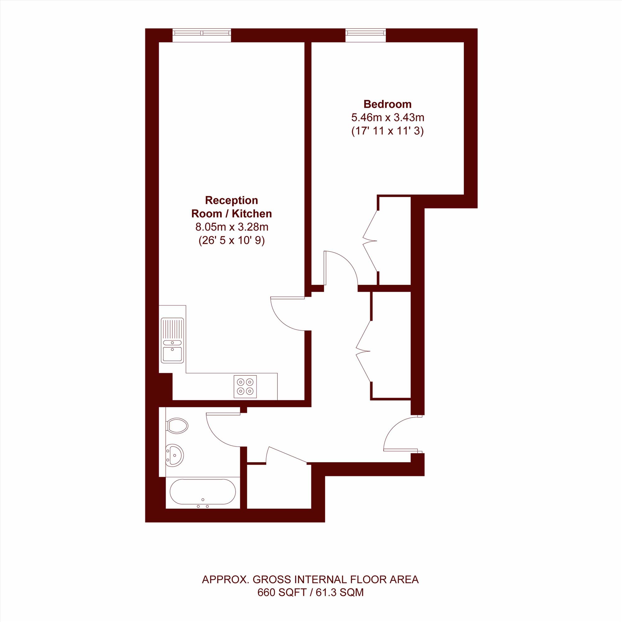 This modern apartment comprises 1 double bedroom with fitted in wardrobes, 1 bathroom, large open plan reception room with fully equipped kitchen, separate utility room and plenty of storage.