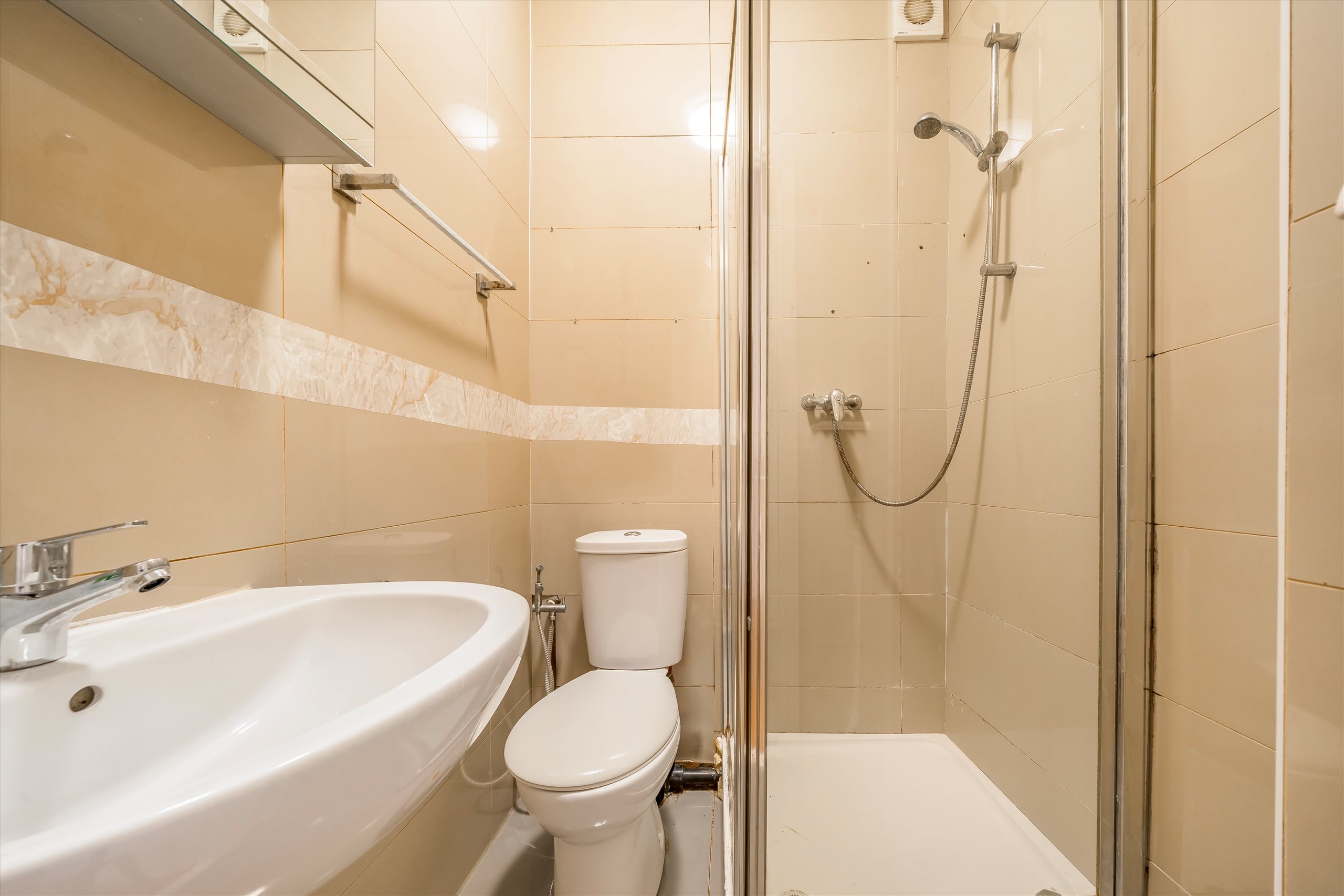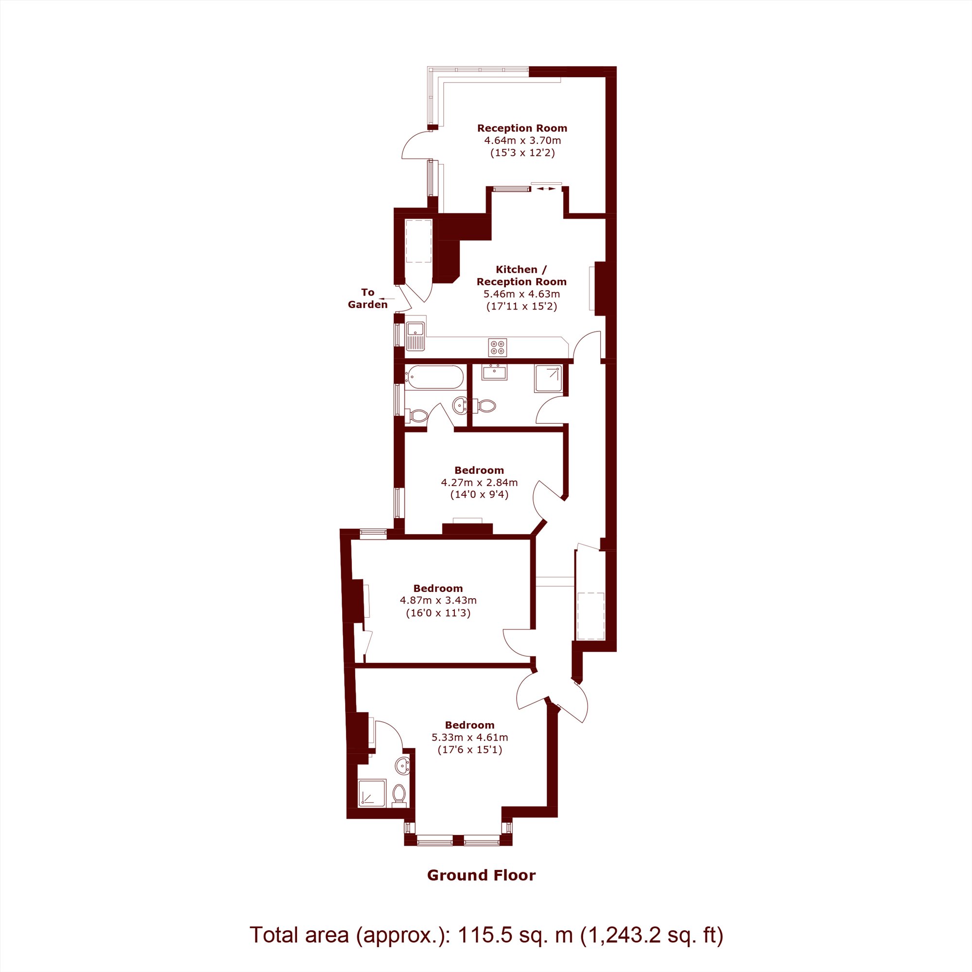 A spacious three bedroom flat that offers three generously sized bedrooms, and 3 bathrooms, a separate fitted kitchen with a private garden