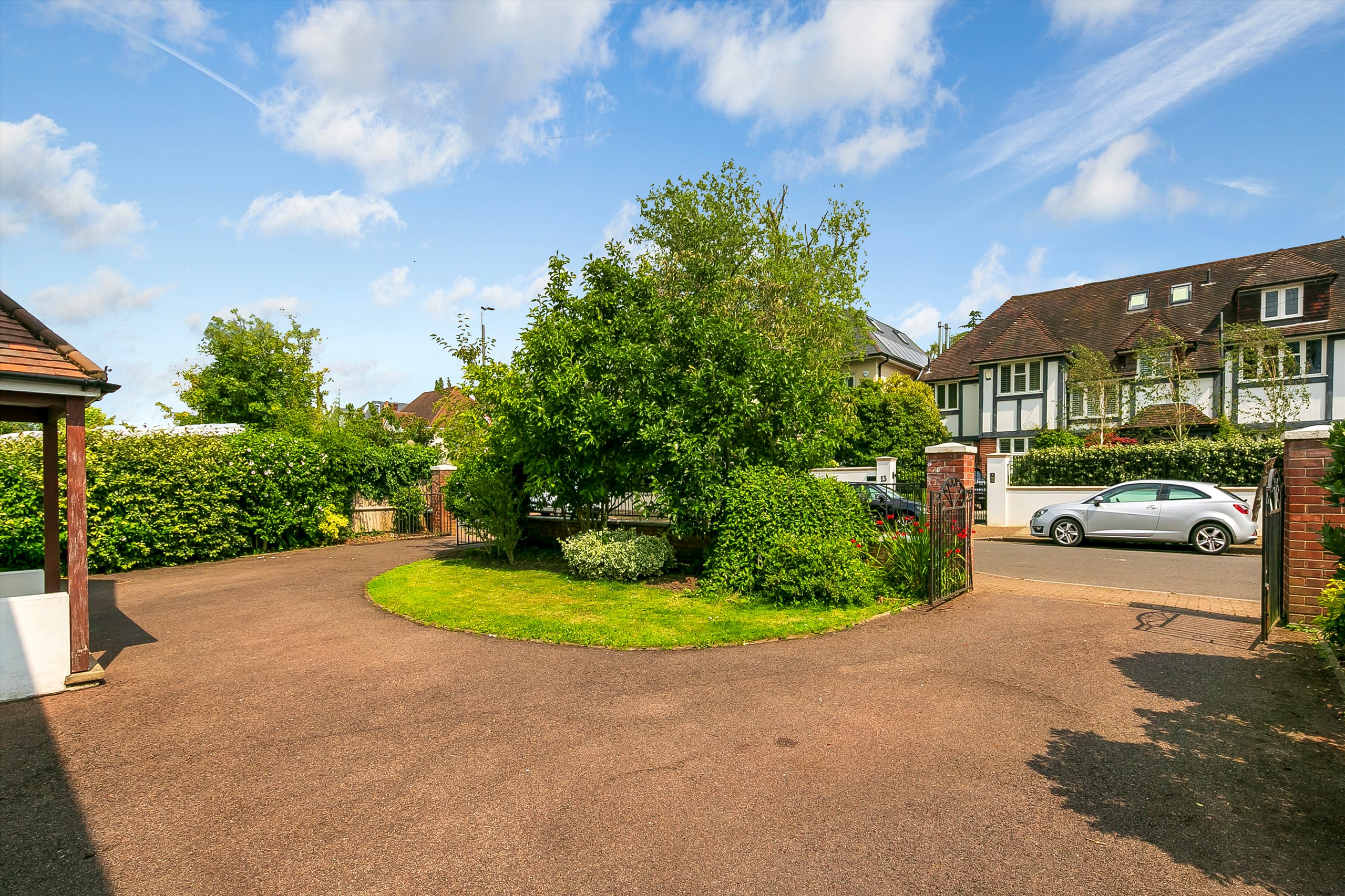 The property benefits from a gated private driveway for secure parking of several cars.