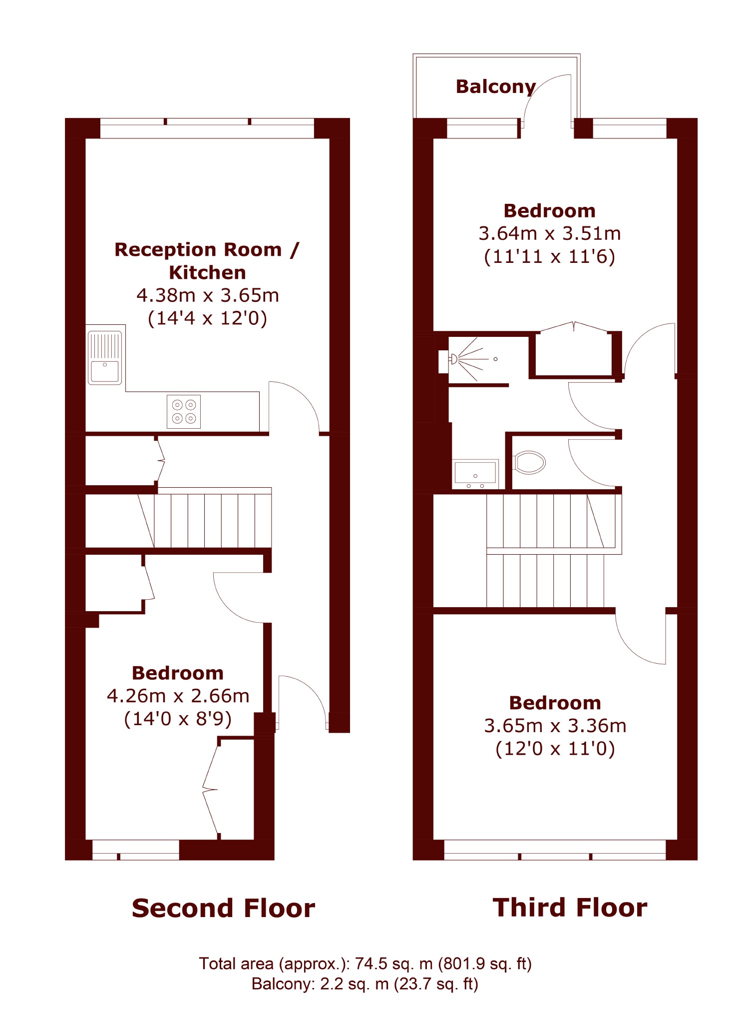 The second floor comprises the two double bedrooms with one having its own private balcony, as well as a large bathroom and a second wc.